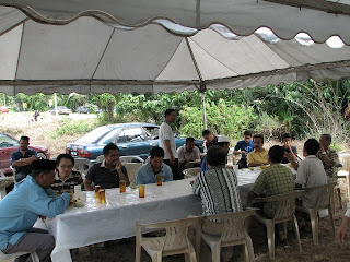 Antara tetamu yg hadir di khemah lelaki. Kelihatan di sebelah kiri: Jaws (abg ipar) n Cikgu Hassan (suami Mkcik Samhah) sedang menjamu selera sambil berbual2 kosong...